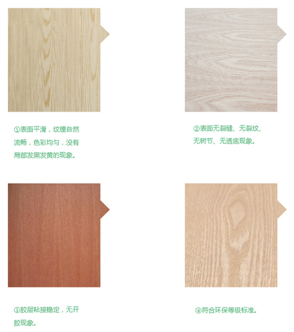 飾面板是普通膠合板上覆貼一層名貴樹種木皮而成,廣泛用于裝修的表面裝飾及家俱。伴隨珍稀樹種資源的日益枯竭,為保護有限資源,發(fā)達國家已成功開發(fā)出裝飾組合單板(科技木),以代替名貴木皮生產(chǎn)貼面板,在花式,紋理上幾可亂真,又避免了天然木材的各種生長缺陷,深受市場歡迎,引起很大反響。 優(yōu)質(zhì)面板要求美觀大方,花紋(弦向)貼面板要求紋理清晰,木紋對稱,無明顯色差,無死節(jié),無挖補,無砂傷,壓痕,無板面污漬,平整光滑;直紋(徑向)貼面板要求紋理平直,無明顯色差,無點狀節(jié)子。 常用貼面板,膠合強度0.5Mpa,浸漬剝離每邊 1/3,含水率6-14% 。