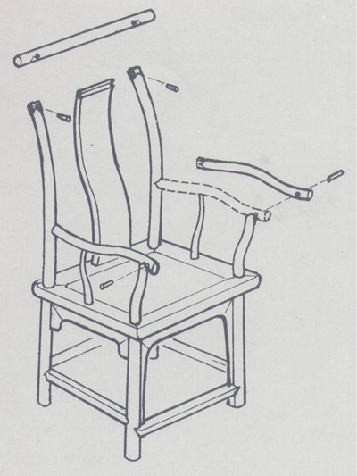 圈口穿銷(圖)是一種比較少見的結構,做工十分講究,明代黃花梨萬歷柜及圈椅上應用,可作鑒定斷代的依據。