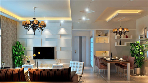 這張圖中的空間為就餐廳,面積比較局限,為了不造成壓抑之感,頂部運(yùn)用了較為簡(jiǎn)單的吊頂造型,這也是許多家庭的首選,暖暖的燈光從木工吊頂縫隙透出,讓這個(gè)空間充滿了溫馨感,同時(shí)也能增添人的食欲。