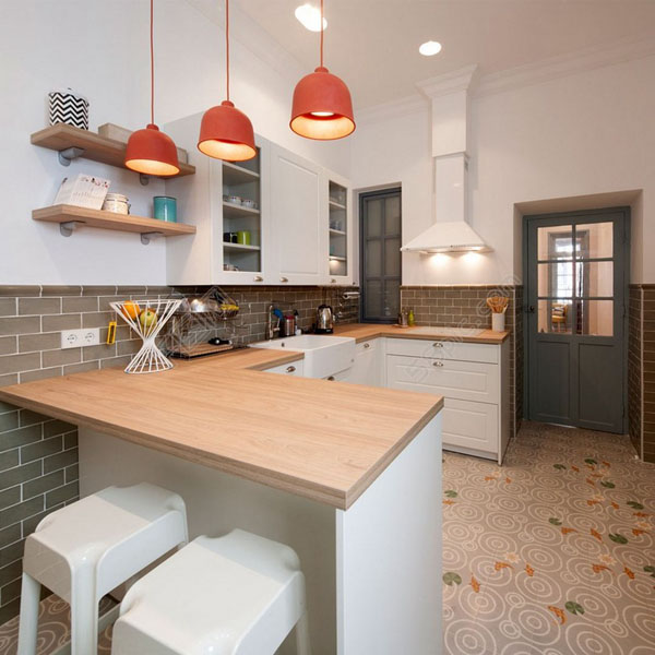 廚房環(huán)境本來就是一個(gè)比較擁擠的區(qū)域,防腐地坪漆有效利用更多的空間就十分重要了。例如,吊柜與操作平臺(tái)之間的間隙通常是可以利用起來的,放一些烹飪中所需的用具,還可以做成簡易的卷簾門,避免小電器落灰塵。如食品加工機(jī)、烤面包機(jī)等。