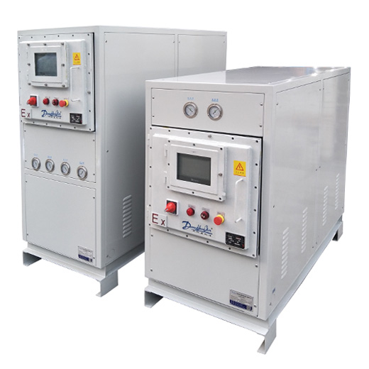 定期檢查水冷式 冷水機電壓、電流量是否穩定,壓縮機運轉聲音是否正常,冷水機正常工作時,電壓為 380V ,電流在 11A-15A 范圍內為正常現象。定期檢查水冷式冷水機冷媒是否有泄漏現象:可參照主機正面面板高低壓表所顯示參數判定。